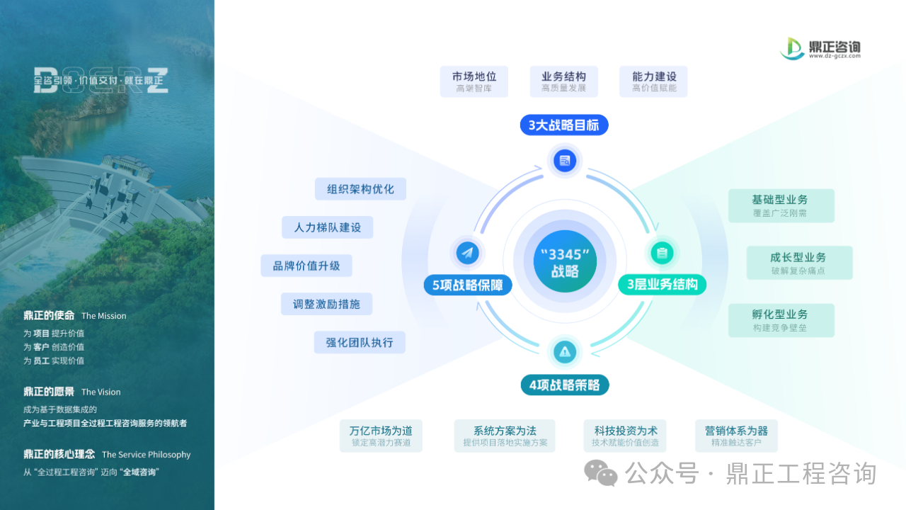 彭总指出,历经行业深度调整,鼎正已站在全新的发展起点。他强调,破局的关键在于转变思维模式,以全新姿态拥抱变革,探索新业务、构建新模式。“3345”战略正是驱动这场转型的核心引擎,通过坚定扎根县域市场、构筑坚实技术护城河,重塑工程咨询行业价值标准,鼎正将迈向更成熟、更理性的发展新阶段,未来的发展也会变得更稳健。