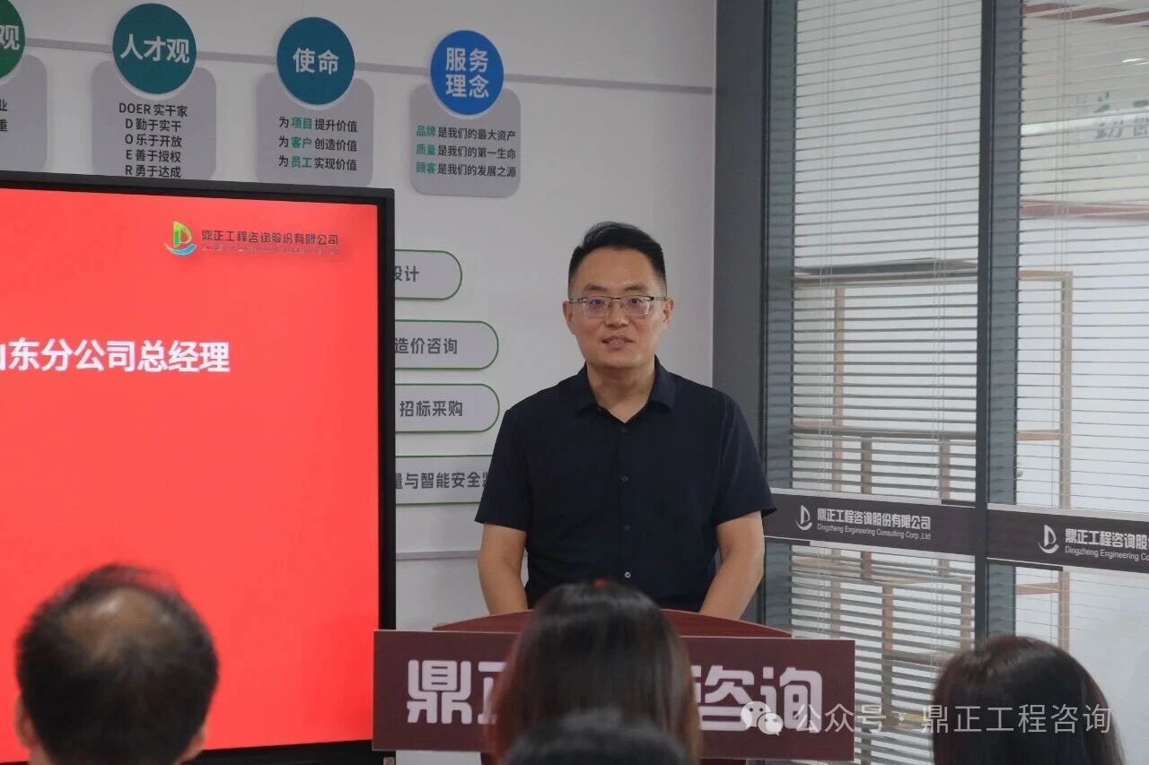 山东分公司总经理孙启刚在致辞中提到,山东分公司的成立是鼎正咨询持续深耕华东市场、坚定不移推进全国布局的重要举措。作为连接长三角与京津冀的“桥头堡”,山东分公司将坚定贯彻“诚信、专业、信任、尊重、责任”的企业价值观,恪守以“以价值创造者为本”的企业文化内核,全面融入山东区域经济格局。他表示,山东分公司将竭诚为每一位客户、每一个项目贡献专业智慧与坚实力量,以卓越业绩向鼎正成立二十周年致敬献礼。