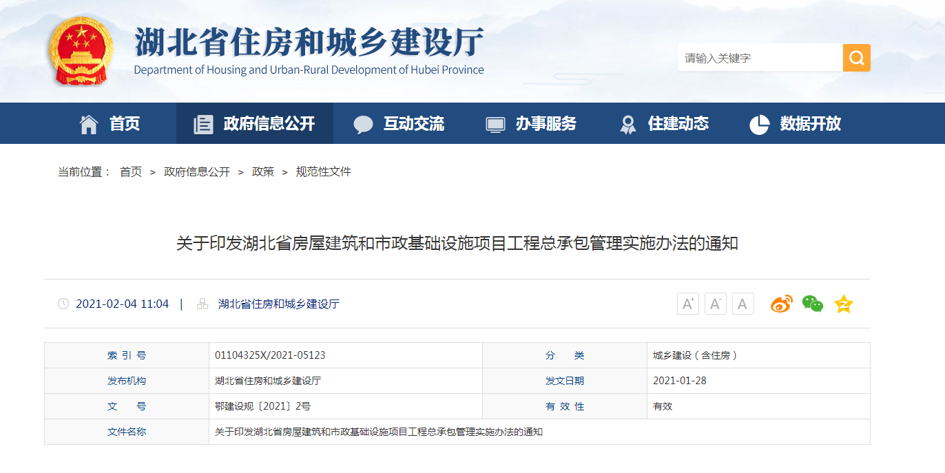 关于印发湖北省房屋建筑和市政基础设施项目工程总承包管理实施办法的通知