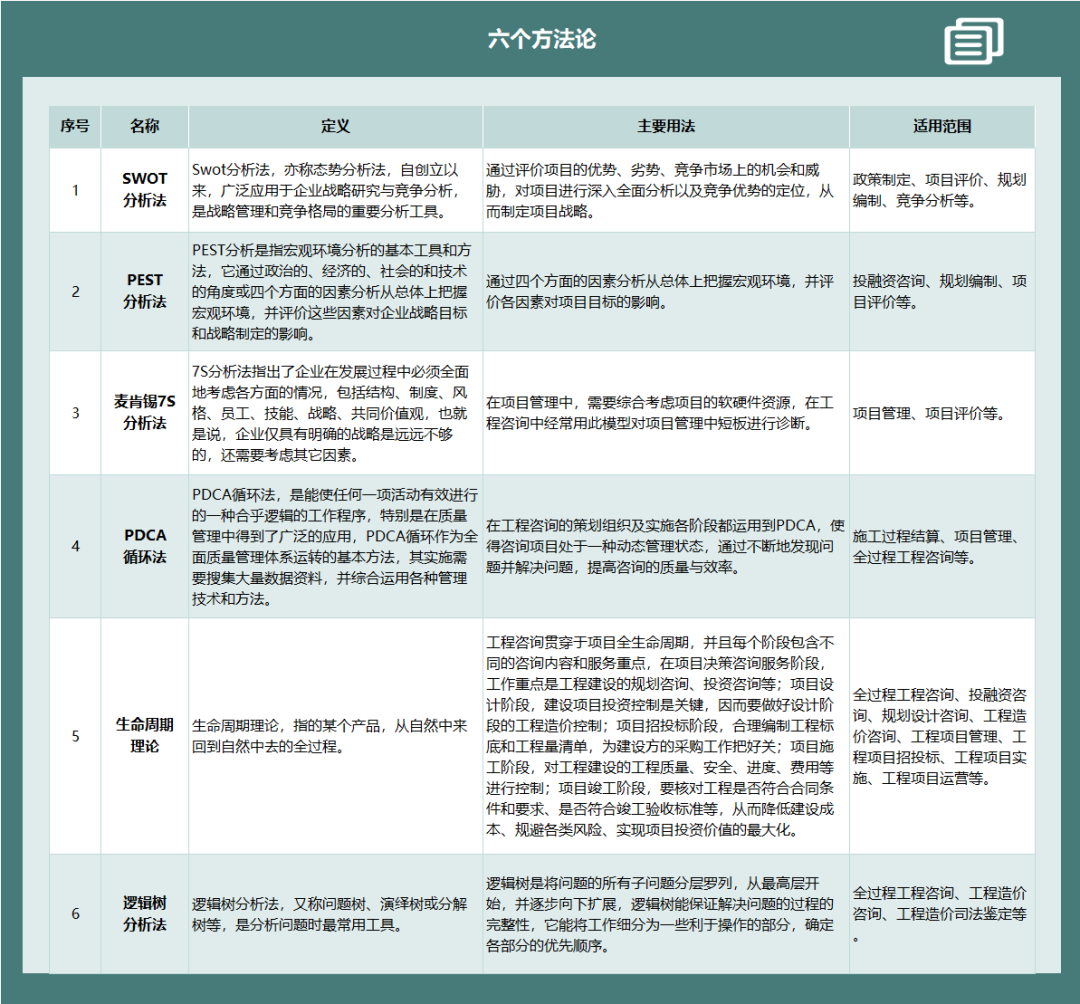 在理念更新迭代以后,行动必须紧紧跟上。王志纲老师曾说:“我手中掌握的超级法宝,就是方法论。只有掌握了正确的方法论,才能做到海纳百川,消化一切。” 因此,作为一家工程咨询服务机构,工作方法论便是帮助我们更好地诊断、研判、分析、实操项目的独门秘方。